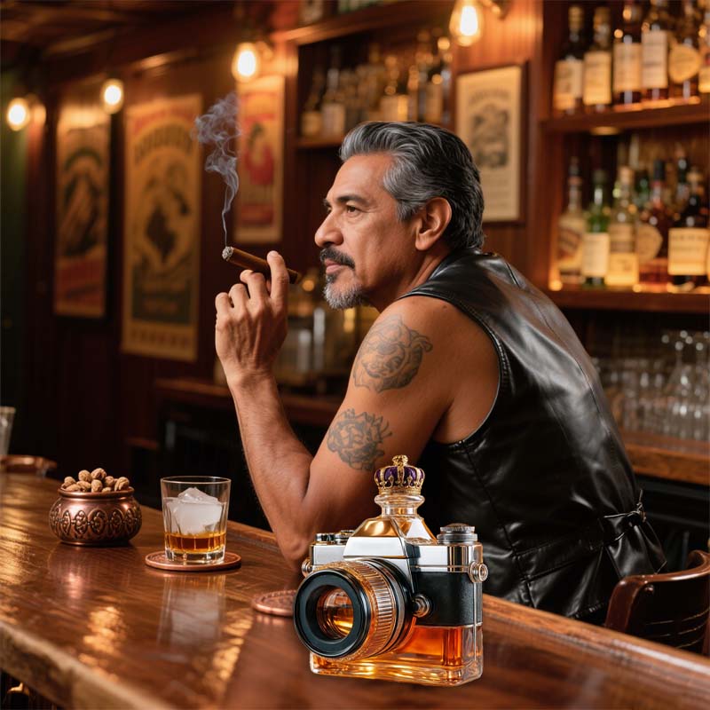 Pour in style with this camera-inspired glass decanter that combines artistry and functionality. Designed for collectors, photographers, and enthusiasts alike, it brings a unique statement to your bar setup or home décor.